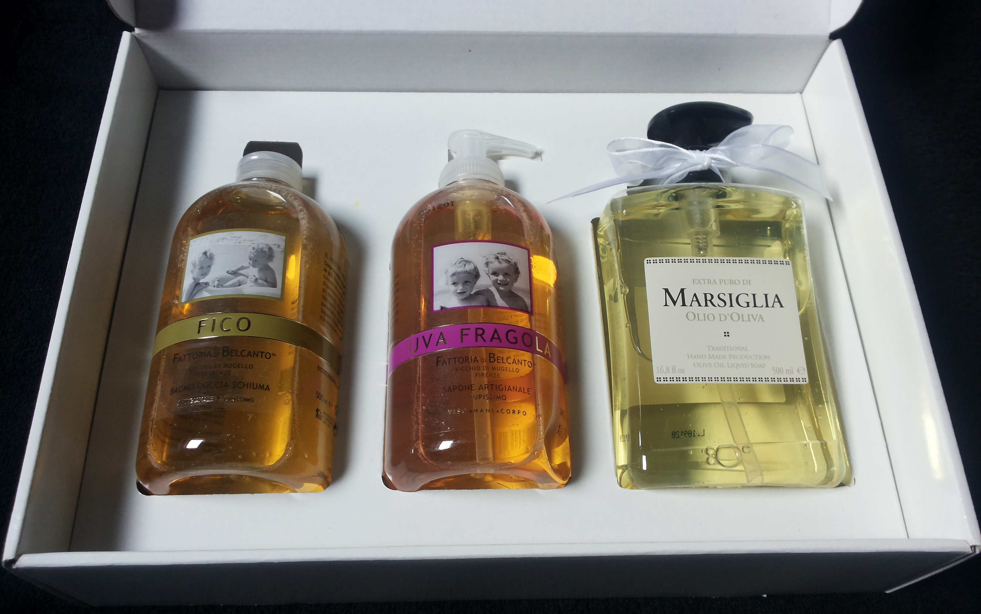 1) Una graziosa scatola con tre prodotti della Fattoria di Belcanto.