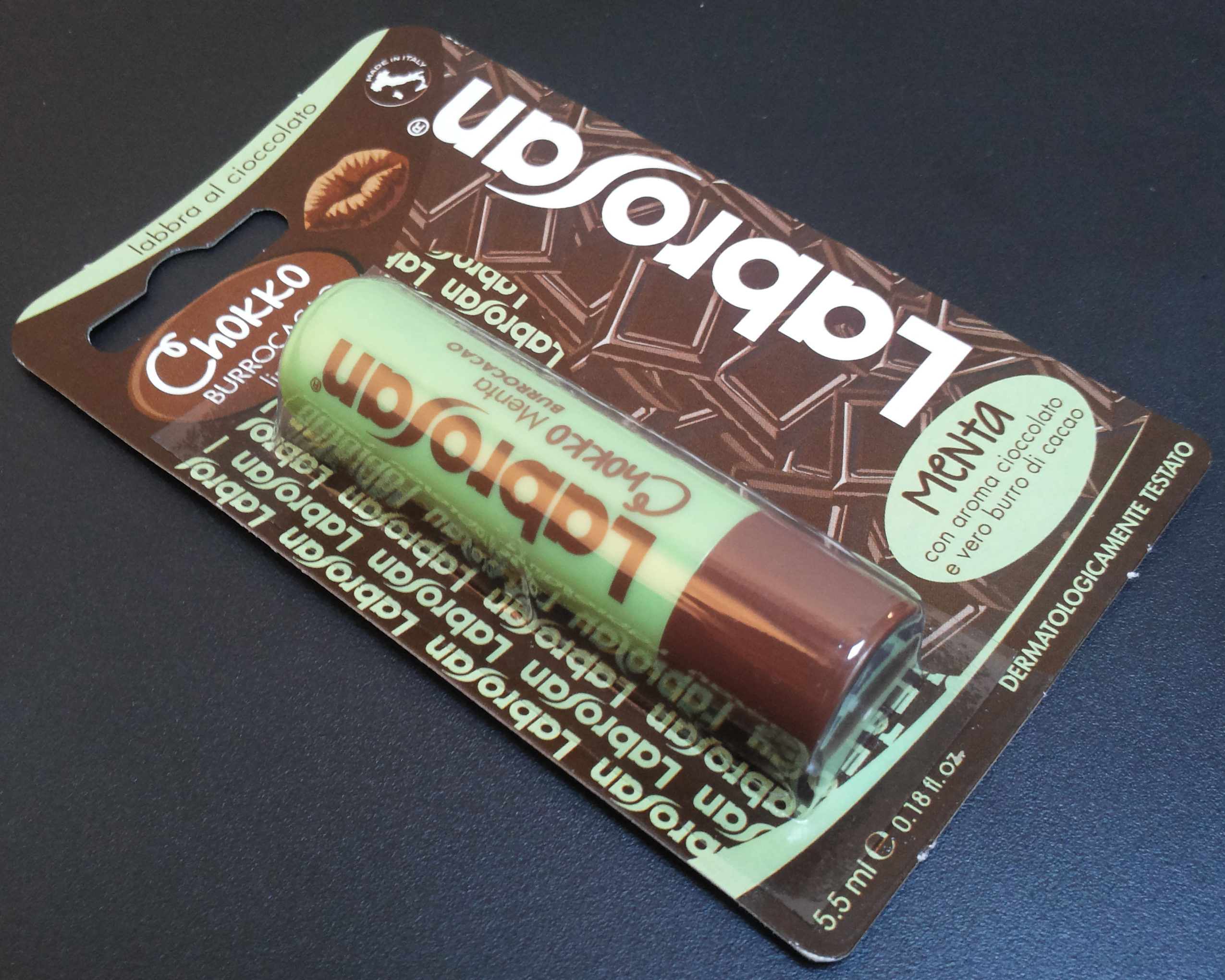 Labrosan Chokko è la nuova linea a base di vero Burro di Cacao ed ingredienti naturali (si… certo!!!!) e golosi studiata per la cura e la bellezza delle labbra. Esistono anche Chokko Gianduia, Bianco e Latte. È dermatologicamente testato.