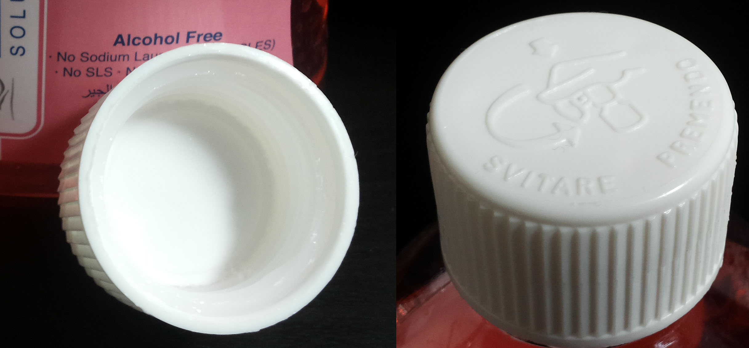 Ma ritorniamo al nostro prodotto… il packaging è quello di un classico collutorio con flacone in plastica trasparente leggermente bombato e con tappo dosatore “premi&svita” in plastica bianca.