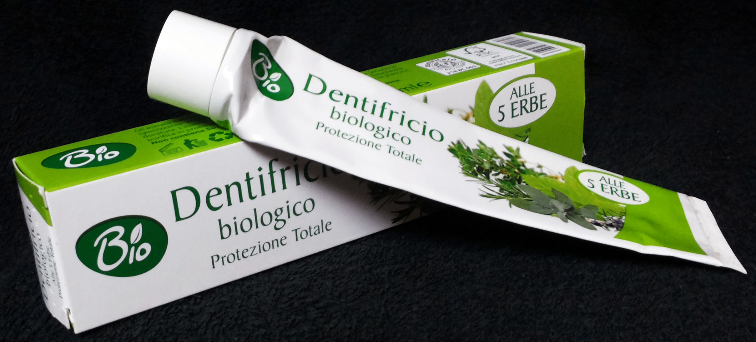 3) Dentifricio Biologico Protezione Totale Bio (75 ml intorno a 1,50 €).