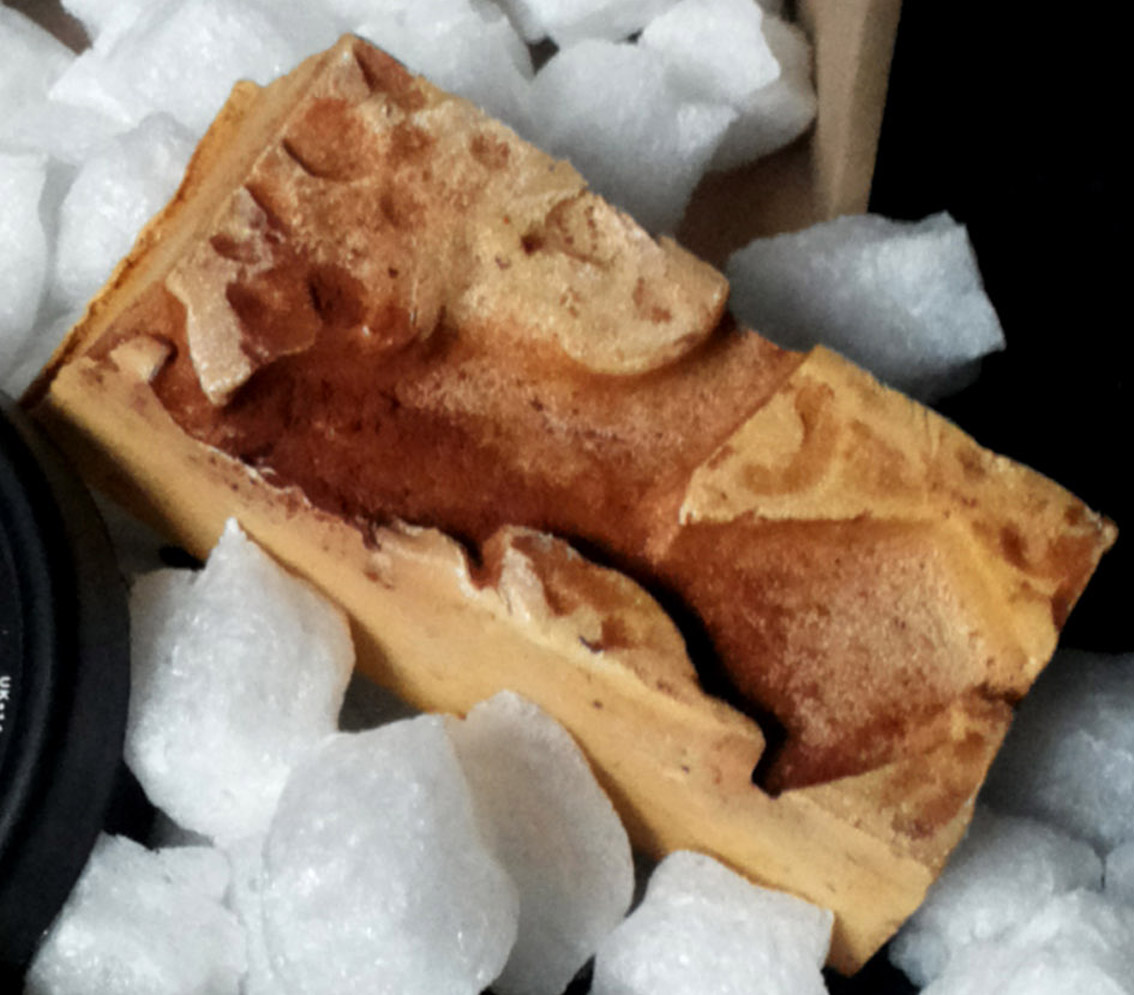 È molto morbido e tende a consumarsi abbastanza in fretta. Il mio ormai è terminato e durante gli ultimi utilizzi si è squagliato lasciando pezzettini un po’ ovunque. Questa è una cosa che non mi garba particolarmente in un sapone!
