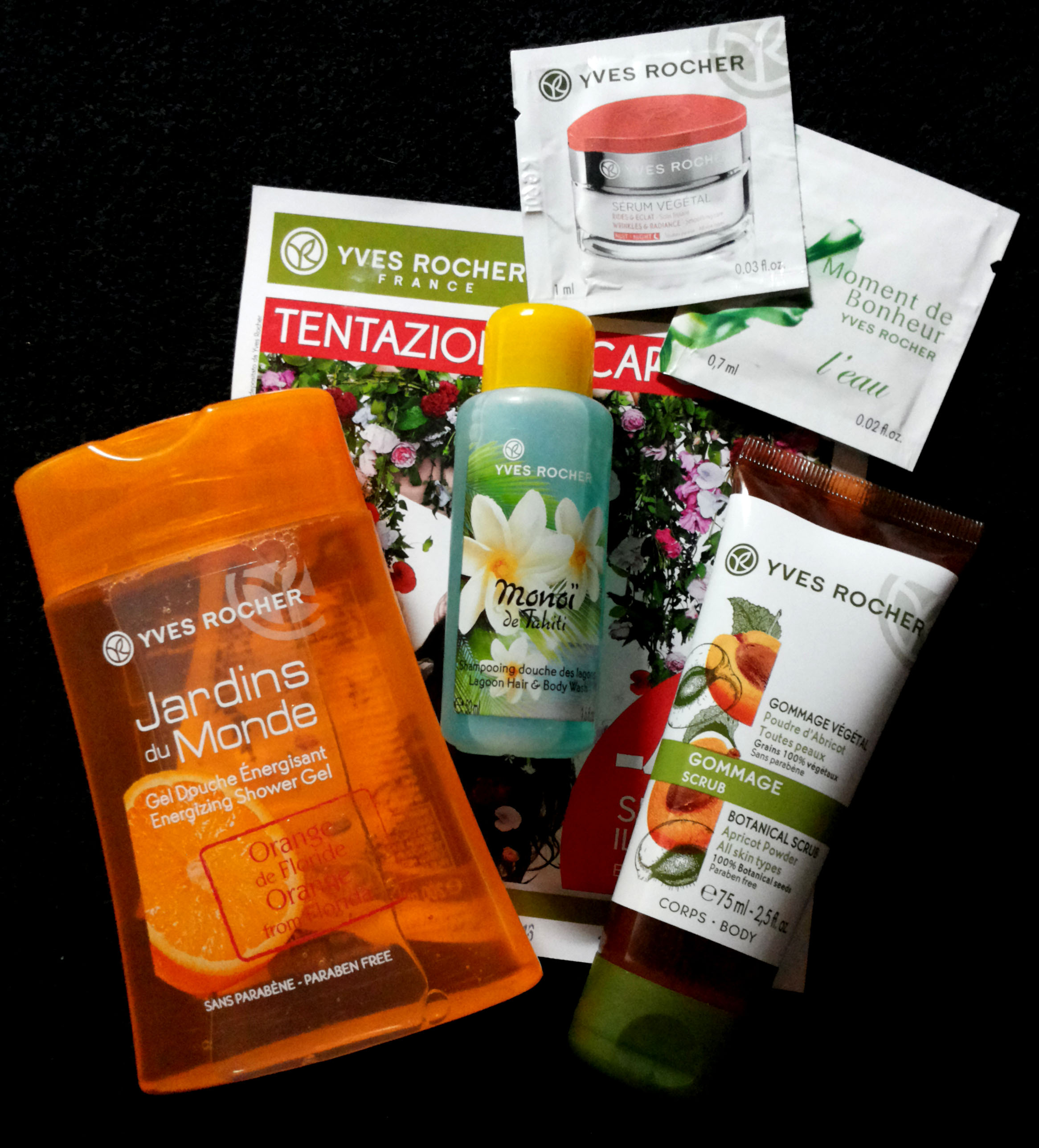 Sono passata anche da Yves Rocher perché qualche settimana fa mi è arrivata una mail con l’invito a ritirare in negozio due prodottini in formato speciale (il Gommage Vegetale ed il Doccia Shampoo della linea “Monoi de Tahiti”) per cui, mentre mi trovavo a zonzo per la città, ho deciso di fare un salto veloce.