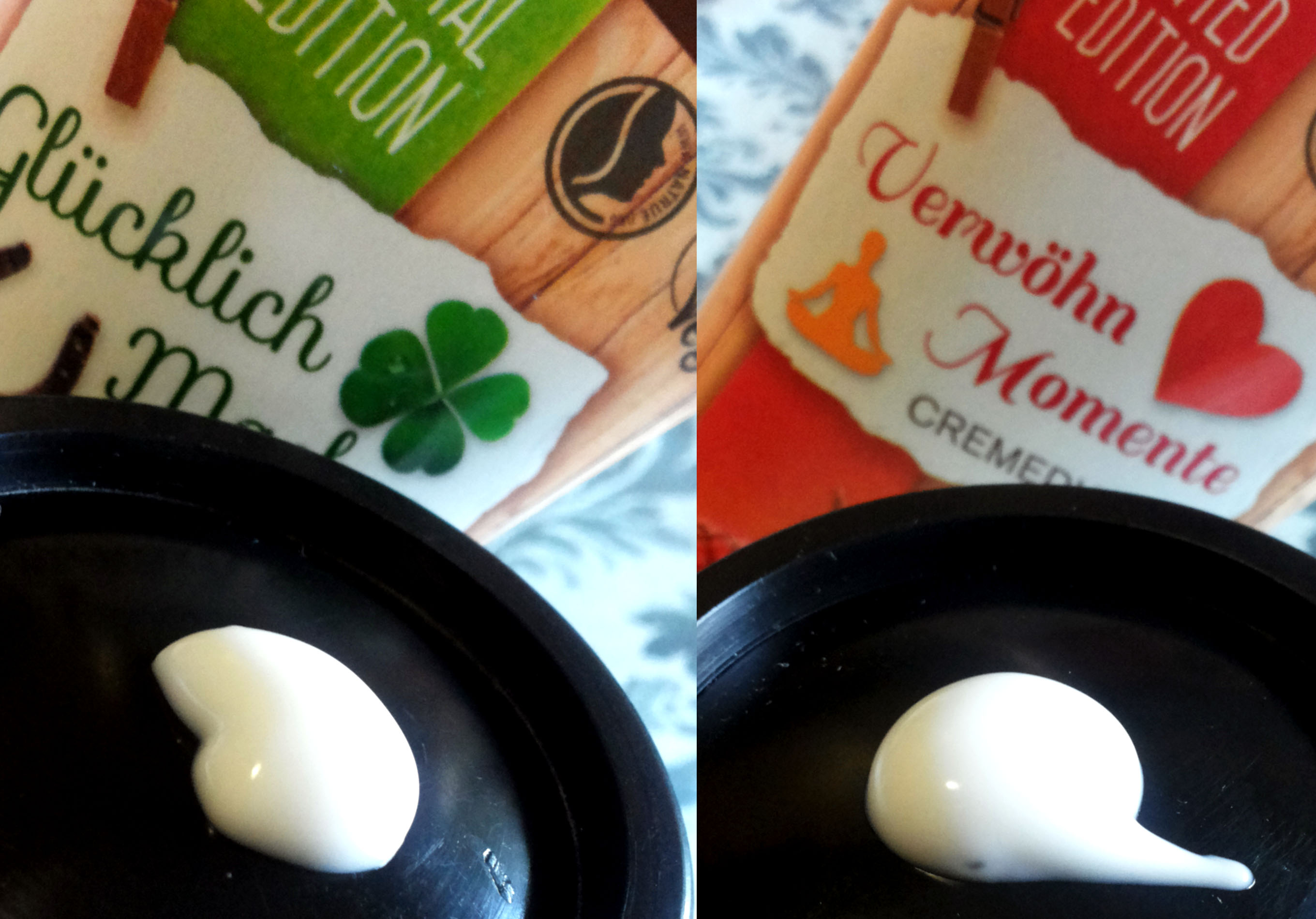 Sono delle cremine detergenti fluide formulate con tutta probabilità per le pelli particolarmente secche. Non ricordo il perché abbia deciso di acquistare questo tipo di prodotto, considerando il fatto che non sono una grande amante delle creme detergenti, forse mi sono lasciata trasportare dai nomi o dalla speranza che le profumazioni fossero un pelino più intriganti.