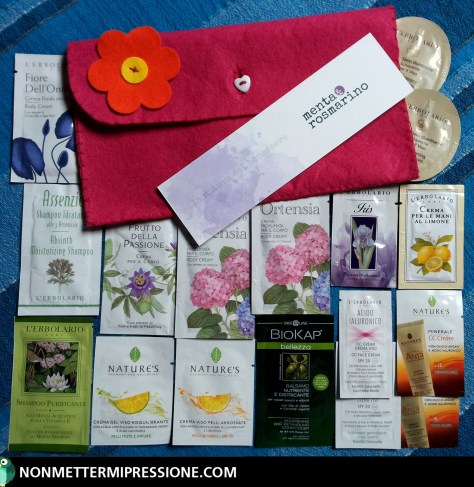 Per concludere, con l’ordine sono riuscita a raggiungere la soglia che mi avrebbe permesso di ricevere a casa una pochette ricca di campionicini.