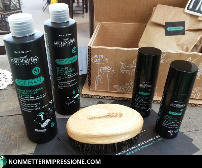Un’altra new entry è la linea TOP MAN, un brand di cosmetici eco-bio specifici per l’uomo “attento al proprio benessere, alla praticità e al design con un occhio di riguardo per tutto ciò che è biologico e sostenibile“. Questa linea totalmente “maschia” ci propone: il Bagno & Shampoo Energizzante al Baobab, il Balsamo Barba & Capelli ammorbidente all’Alloro, la Crema Viso Idratante & Energizzante al Patchouly e la Lozione Rinfrescante Post Rasatura all’Aloe.
