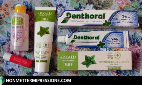 Questo mi è garbato assai, ma meno a Mr Darcy che – vorrei aggiungere – fa sempre delle storie! Comunque, si tratta di un dentifricio che pulisce i denti discretamente senza risultare aggressivo sulle mucose. Pur avendo un piacevole sapore di menta, dopo ogni lavaggio – ahimè! – non è mai stato capace di preservare quella sensazione di freschezza prolungata che può, invece, assicurarti un classico dentifricio come quello della Denthoral del piano di sotto, ma – ad ogni modo – non mi è dispiaciuto.