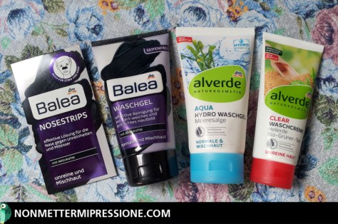 All’interno di questi punti vendita è possibile trovare non solo cosmetici, ma anche prodotti dedicati alla cura della casa, integratori, dispositivi medici, cibo salutare, tisane e tè. Nonostante i diversi brand proposti, la sottoscritta ha deciso di passare in rassegna e – di conseguenza – acquistare qualche prodotto a marchio alverde (link sito italiano e link sito tedesco) e Balea (link sito italiano e link sito tedesco). Il primo è un brand certificato Natrue, ha buone formulazioni e molti degli ingredienti utilizzati provengono da agricoltura biologica certificata, mentre il secondo non ha particolari certificazioni, ma – a volte – propone prodotti con formulazioni accettabili.
