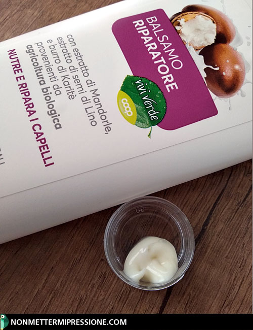 Dopo aver provato, terminato e sepolto lo shampoo nutriente della stessa casata, credo sia giunto il momento di parlare del Balsamo Riparatore della linea “Vivi Verde Coop”, un prodotto che non è stato in grado di sedurre le mie negre chiome.