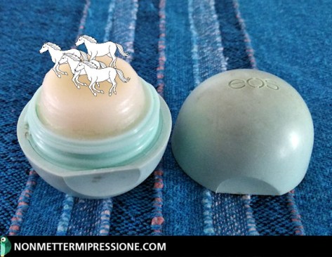 Il prodotto, conosciuto in lungo in largo, è conservato all’interno di una graziosa confezione a forma di ovetto, dotata di un semplice tappo avvitatore accompagnato da una piccola scanalatura laterale che ne facilita l’avvitamento e lo svitamento. Il balsamo ha una bella consistenza compatta che scivola piacevolmente lasciando sulla bocca una sensazione di freschezza, donata dall’olio essenziale di Menta piperita (Mentha piperita Oil)presente in formulazione.
