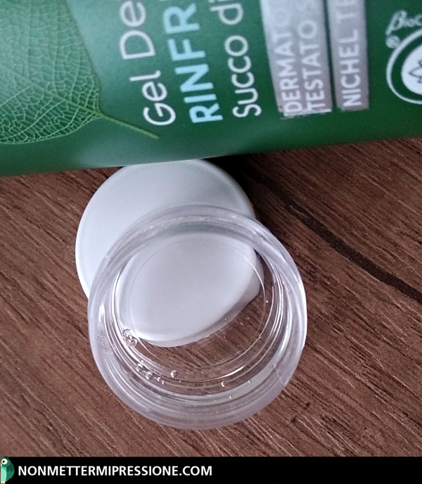 Il prodotto è conservato all’interno di un flacone di plastica rigida, dotato di un comodo dosatore a pompetta. La consistenza è – per ovvi motivi – molto simile a quella di un gel con un’anima, però, un tantino più fluida e la profumazione è molto fresca, contornata dalle note fiorito-aromatiche della Lavanda e da quelle “verdi” della Menta.
