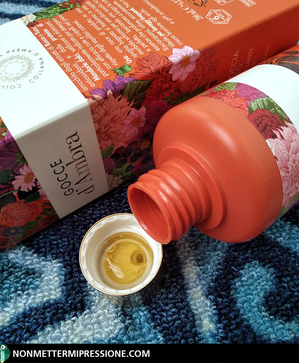 Dopo avermi regalato la Schiuma da Bagno Profumata della linea “Bianco d’Ambra”, una mia cara amica ha pensato bene di farmi provare anche la versione “Gocce d’Ambra”. Devo dire che dopo averle provate entrambe, la mia preferita resta “Bianco d’Ambra”, soprattutto per una questione di preferenze olfattive più che di consistenza o di efficacia detergente, però sono convinta che, quando avrò modo di provare anche l’ultima versione “Nettare d’Ambra”, le mie attuali simpatie potrebbero essere ulteriormente messe in discussione. Tornando a noi, il prodotto in questione ha una consistenza molto simile a quella di un gel e, forse, leggermente più corposa rispetto a quella della versione “Bianco d’Ambra”, mentre la profumazione è descritta sempre dal confortante abbraccio ambrato pizzicato, però, da frizzanti punte agrumate e da lievi accenti legnosi. Il tutto, come sempre, è conservato all’interno di un semplice flacone di plastica dotato di un tappo a pressione e accompagnato dalla solita confezione in cartoncino con tutte le indicazioni del caso, tra cui una dettagliata spiegazione della formulazione sulle pareti interne.