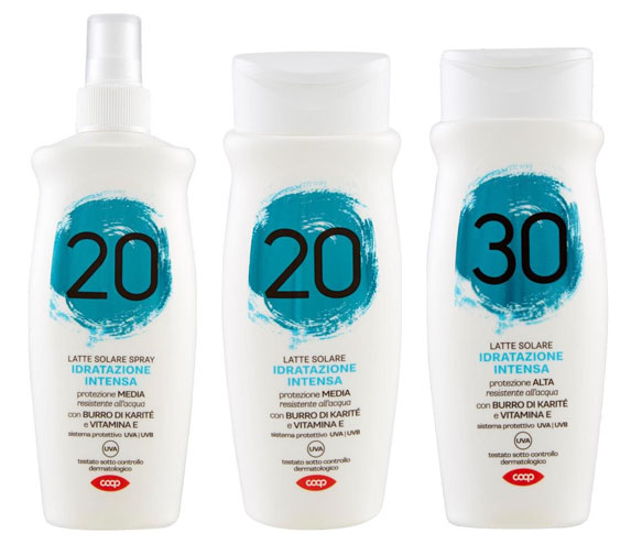 - Latte Solare “Idratazione Intensa” – Protezione MEDIA 20, formula resistente all’acqua ed arricchita con burro di Karitè e Vitamina E (200 ml a 7,90 €).