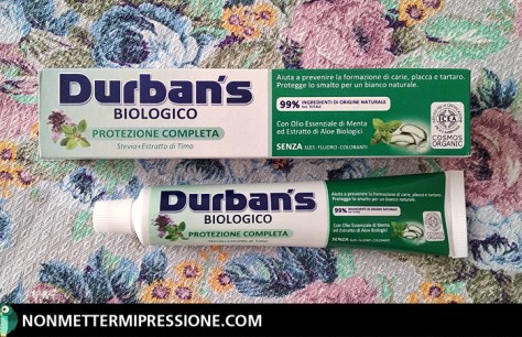 2 pensieri riguardo “Dar pareri volentieri: Dentifricio biologico “Protezione Completa” e Dentifricio biologico “Sbiancante” – Durban’s”