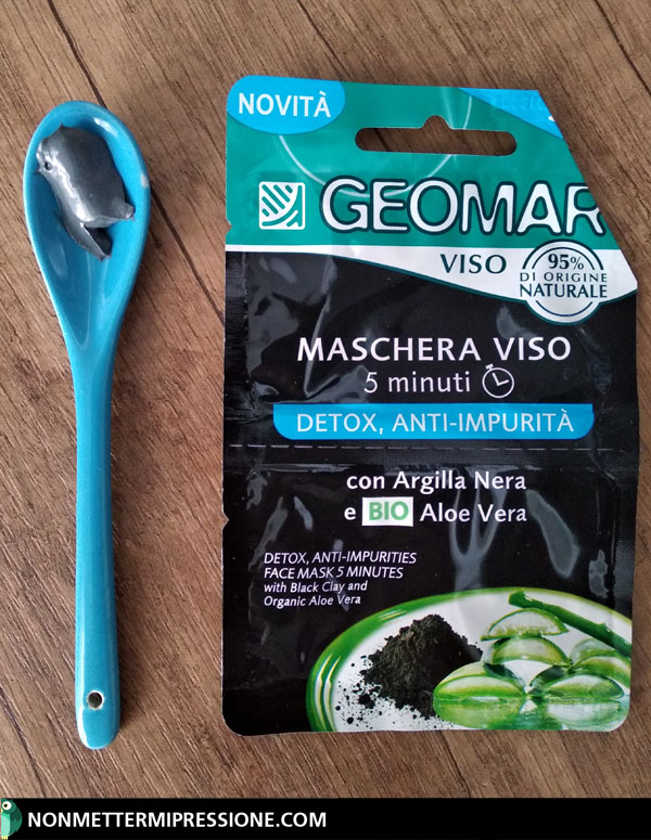 I prodotti della linea GEOMAR Viso sono formulati con almeno il 95% di ingredienti di origine naturale, in parte ottenuti da agricoltura biologica, per garantire alla pelle un’azione delicata senza rinunciare all’efficacia. La Maschera Viso Detox è un trattamento specifico che in soli 5 minuti aiuta a eliminare tossine e impurità accumulate sulla pelle del viso. Contiene Argilla Nera astringente e opacizzante, Carbone Vegetale di Bambù, dalle proprietà detossinanti e purificanti, e Aloe BIO idratante. La sua texture cremosa è piacevole da applicare e ideale per tutti i tipi di pelle.