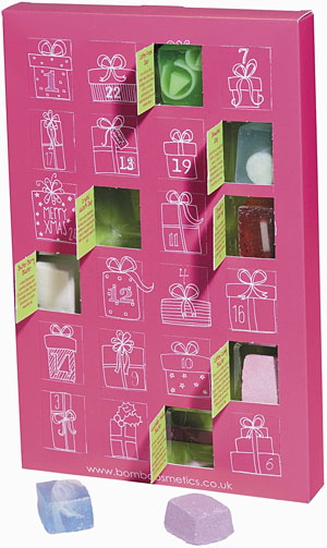 • Calendario dell’Avvento con saponi profumati e bombe da bagno – Bomb Cosmetics (24 sorprese a 17,63 €).