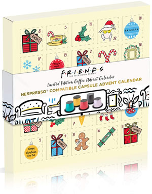 Un calendario dell’Avvento in Limited Edition pensato per gli amanti del caffè e della serie televisiva “Friends”. Dietro ogni finestrella una capsula di caffè Nespresso saprà rendere più gradevole l’attesa del Natale.