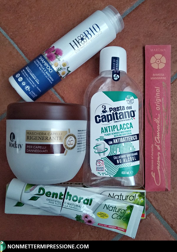 2) Prodotti per la cura di capelli, igiene orale e un piccolo intruso