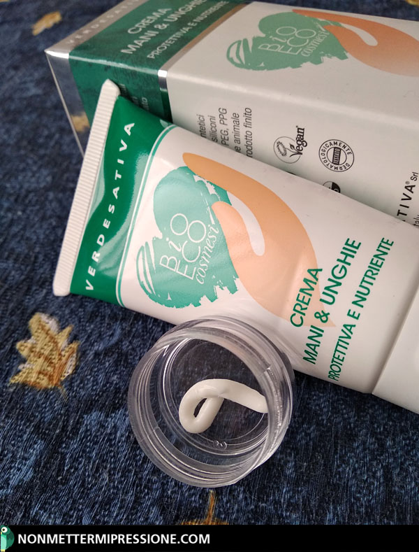 Oggi, cari lettori, ho pensato bene di parlare di un prodotto che nel suo piccolo ha cercato di aiutare le mie povere mani disastrate a fronteggiare il freddo e quella mia insana abitudine di non mettere i guanti quando sono solita affrontare le faccende domestiche, in particolare il lavaggio dei piatti. Ora, sapete di chi sto parlando? Beh, della Crema Mani & Unghie “Protettiva e Nutriente“ di Verdesativa, un’azienda italiana che da diversi anni si dedica alla realizzazione di cosmetici naturali a base di olio di Canapa sativa. Dunque, questa piccola signorina è entrata a far parte della mia routine giornaliera grazie ad un regalo a tema – per l’appunto – “Verdesativa”, fattomi da mia sorella e dal suo compagno in occasione del Natale.