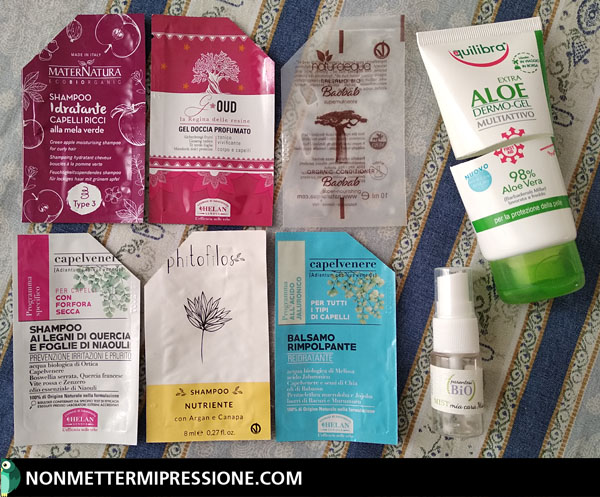2) Mini-taglia e campioncini per la cura di capelli e viso