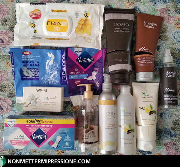 ⇒ Assorbenti extra lunghi con ali “Flusso Intenso Notte” di Coop e Assorbenti “Goodnight – Ultra Large+” di Nuvenia (20 pz a 1,72 € e 8 pz in offerta a 1,15 €).