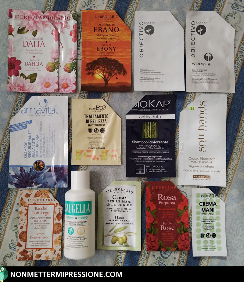Sebbene la foto sovrastante sia un po’ scura, ho deciso – comunque – di tenerla perché quel timido raggio di sole che attraversa il marasma di bustine mi è sembrato così poetico, non trovate? Vaneggiamenti a parte, come vi ho già detto nel precedente post dei prodotti finiti, nel mese di Febbraio mi sono concentrata sullo smaltimento dei campioncini. Sono tutte bustine che ho ricevuto dopo aver fatto degli ordini da alcune erboristerie online particolarmente generose (Erboristeria Profumeria Verde, Le Erbe di Sara, Lillà Natura, Erboristeria L’Achillea, ecc…), fatta eccezione per quelli di “puroBIO” che ho trovato all’interno del “Welcome Kit” che potete richiedere CLICCANDO QUI. Oltre a tutti i campioncini dedicati alla skincare, in questo set prova potete trovare la Maschera Capelli “5 Vitamine” e alcune bustine della linea “FOR HAIR”. Ora, non dovrei averne altri in giro perché quelli delle BB cream e dei fondotinta – che trovate sempre nel kit – li ho dati tutti alla mia mamma. Detto questo, direi di aprire le danze…