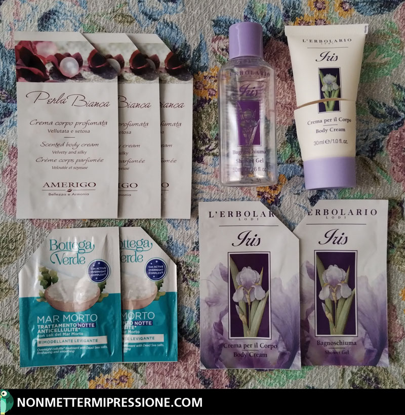 ⇒ Bagnoschiuma e Crema per il Corpo della linea “Iris” – L’Erbolario (50 ml a 2,90 €, 30 ml a 3,90 € e 2 x 8 ml).