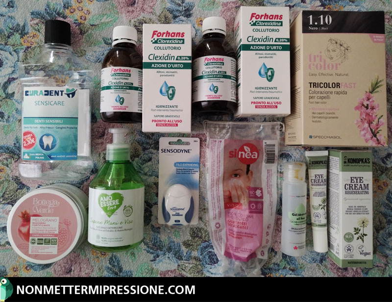 Anche questi sono stati acquistati sempre sul sito della “Farmacia Petrone”, tuttavia – a differenza di quello al piano di sopra – sono stati utilizzati esclusivamente dall’uomo di casa per trattare una fastidiosa problematica. Da quello che ho capito non li ha trovati dei prodotti malvagi, al contrario sono stati abbastanza efficaci e con un sapore discretamente rinfrescante. Sono formulati con la Clorexidina allo 0,20%, l’Anetolo, il Mentolo e l’olio essenziale di Menta piperita.