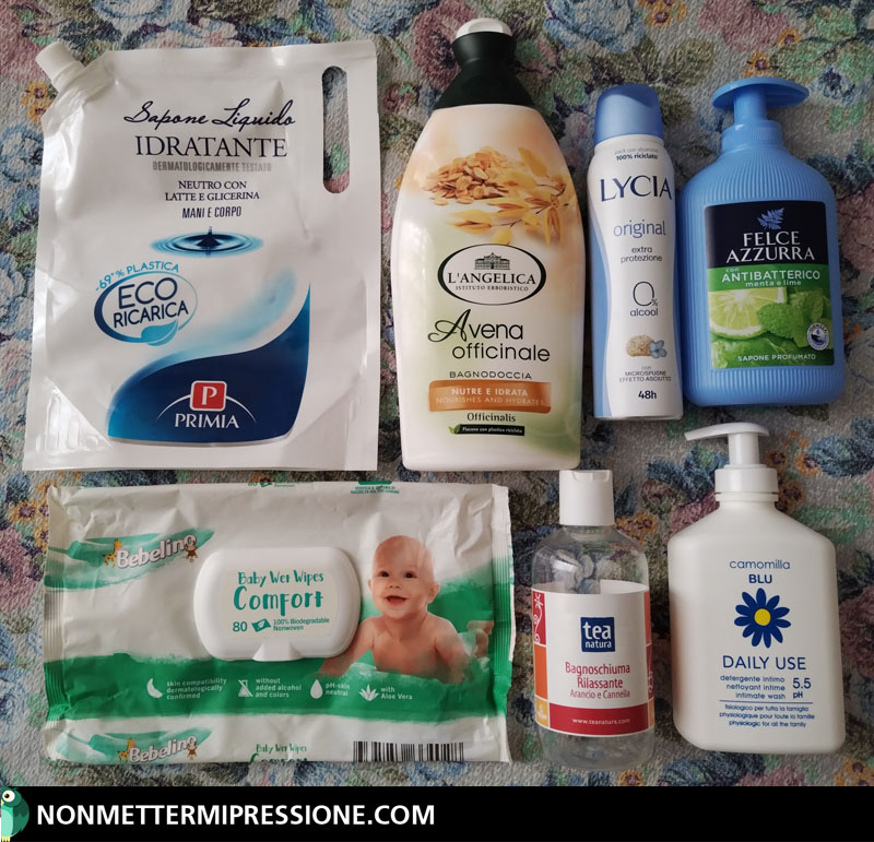 Come per tutte le salviette che passano per questa casa, anche queste sono state utilizzate nei modi più disparati: per rinfrescarci, per detergere velocemente alcune superfici e per pulire il culetto e le zampotte del gatto al bisogno. Le potete trovare da “Penny Market”, hanno una formulazione molto basica, non contengno alcool e sono arricchite con il succo di Aloe vera. Le abbiamo trovate ben imbevute, hanno una profumazione discreta e abbiamo trovato comodo anche il coperchio salvafreschezza. Hanno, tuttavia, un piccolo problema al momento dell’uscita dalla confezione, ossia tendono a riprodurre il famoso trenino di capodanno.